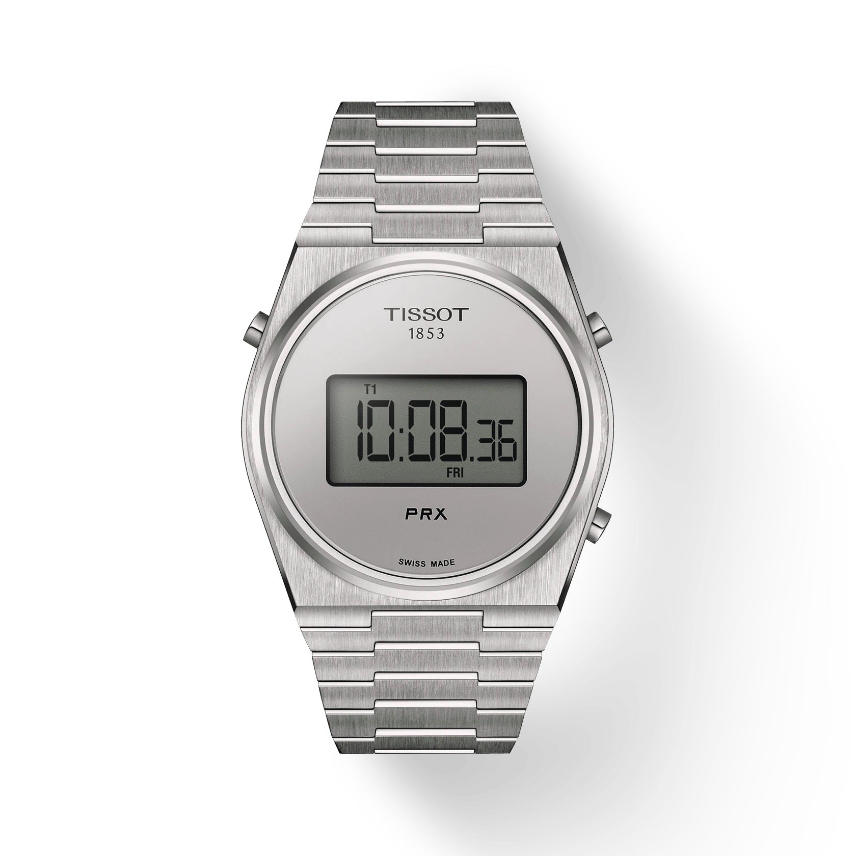 Mit 35 oder 40 mm Durchmesser und in einer Vielzahl von Farben erhältlich, passt die Tissot PRX Digital zu jedem Style und an jedes Handgelenk, während ihre verschiedenen Funktionen - zweite Zeitzone, Tag/Datums-Anzeige, Chronograph und mehr - allen Bedürfnissen gerecht werden. Mit ihrem bis zu einem Druck von 10 bar (100 m) wasserdichten Gehäuse und der satinierten Dreifach-Faltschließe ist diese Uhr gleichermaßen für Robustheit und Komfort gemacht.