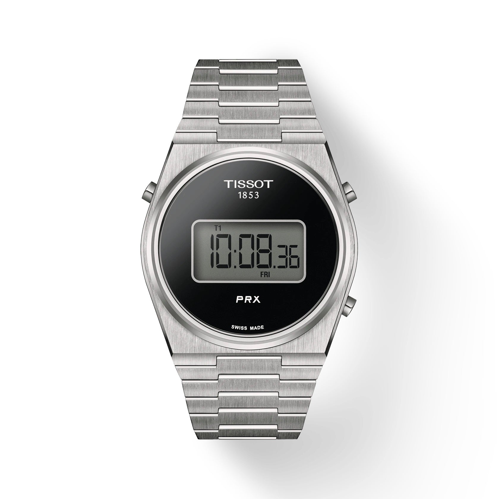 Mit 35 oder 40 mm Durchmesser und in einer Vielzahl von Farben erhältlich, passt die Tissot PRX Digital zu jedem Style und an jedes Handgelenk, während ihre verschiedenen Funktionen - zweite Zeitzone, Tag/Datums-Anzeige, Chronograph und mehr - allen Bedürfnissen gerecht werden. Mit ihrem bis zu einem Druck von 10 bar (100 m) wasserdichten Gehäuse und der satinierten Dreifach-Faltschließe ist diese Uhr gleichermaßen für Robustheit und Komfort gemacht.