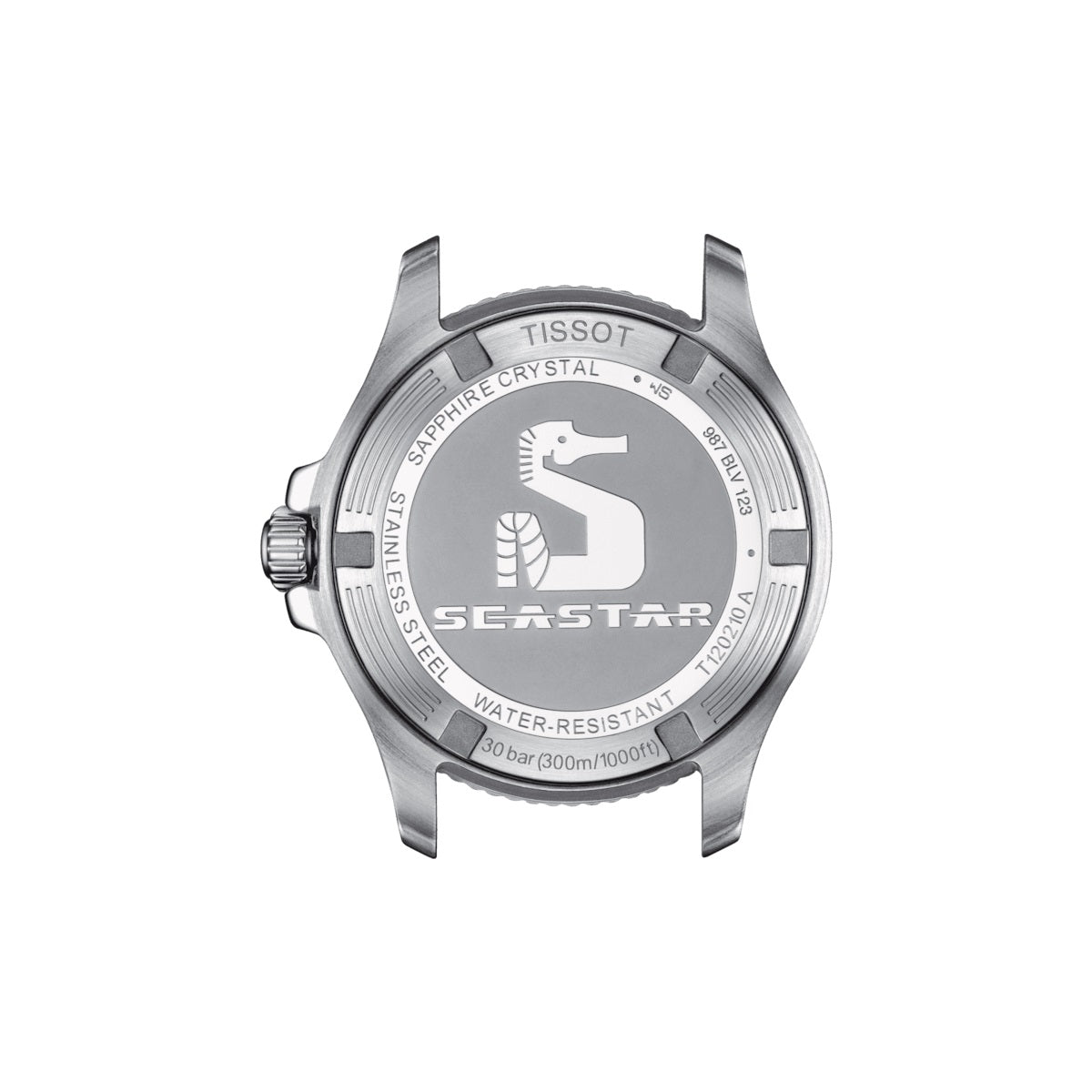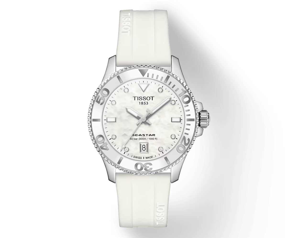 • Im kristallklaren Wasser sehen Sie, wie die Sonnenstrahlen durch die Oberfläche brechen. In Ihrem Kopf: entspannte Ruhe. An Ihrem Handgelenk: die Tissot Seastar 1000 36mm, Ihr Tor zur Unterwasserwelt. Sie ist schick, markant und vielseitig. Egal, welche Variante Sie wählen, alle verfügen über ein Swiss Made Quarzwerk, ein 316L-Edelstahlgehäuse mit 36 mm Durchmesser, eine einseitig drehbare Lünette mit Mineralglas-Inlay, eine verschraubte Krone und einen verschraubten Gehäuseboden sowie eine Wasserdichtigkeit bis zu einem Druck von 30 bar (300 m).